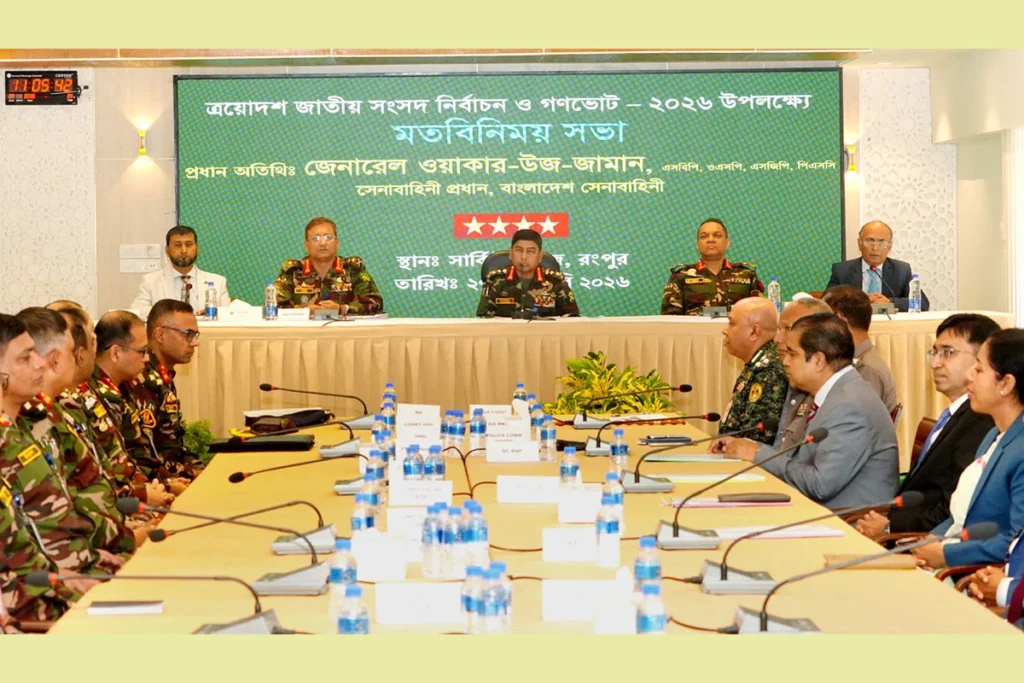 আসন্ন ত্রয়োদশ জাতীয় সংসদ নির্বাচন ও গণভোট-২০২৬ উপলক্ষে সার্বিক আইনশৃঙ্খলা পরিস্থিতি মূল্যায়ন এবং ‌‘ইন এইড টু দ্য সিভিল পাওয়ার’ এর আওতায় মোতায়েনরত সেনাসদস্যদের পরিদর্শনের লক্ষ্যে রংপুর ও রাজশাহী পরিদর্শন করেছেন সেনাবাহিনী প্রধান জেনারেল ওয়াকার-উজ-জামান।
