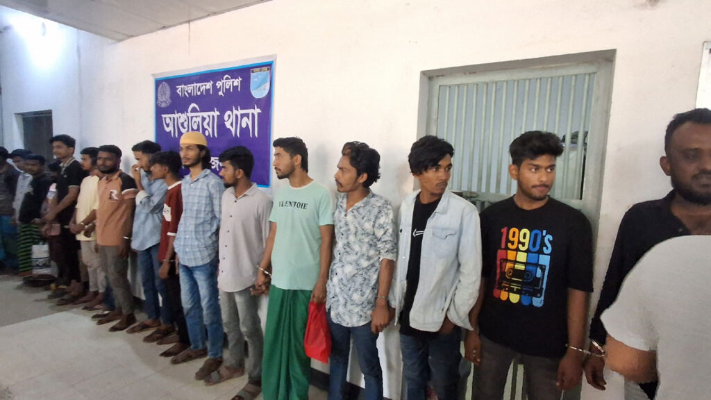 গ্রেপ্তারকৃতরা হলেন- তপন ব্যাপারী (১৮), রজব (২১), মুন্না আহমেদ (১৮),শিপন মিয়া (২৫), শান্ত সরকার (২২),আরজু (২০), সানি ইসলাম (২৩), রায়হান ইসলাম রাকিব (২০), শাকিল (২০), রাতুল ইসলাম (২০), সোহান (২০), রনি ইসলাম (১৯), কুরবান (২২) ও শাকিল (২৫)।