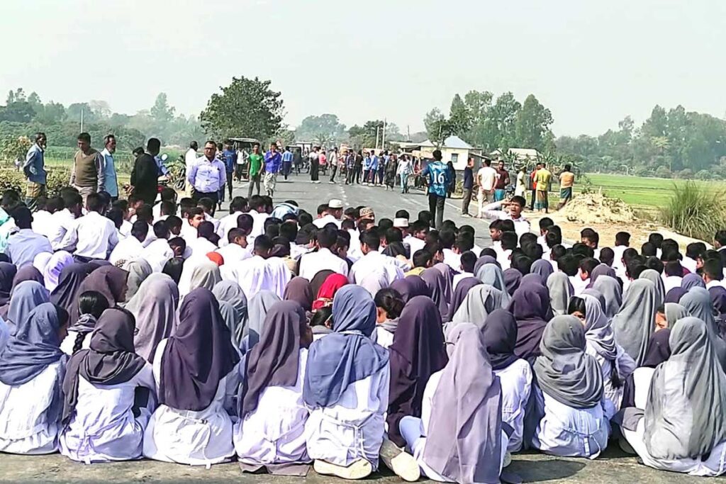 দুর্ঘটনার পরপরই বিক্ষুব্ধ শিক্ষার্থী ও এলাকাবাসী অভিযুক্ত চালকের দৃষ্টান্তমূলক শাস্তি এবং ঘটনাস্থলে স্পিড ব্রেকার নির্মাণের দাবিতে মহাসড়ক অবরোধ করেন। অবরোধ চলে দুপুর ১টা পর্যন্ত। এতে মহাসড়কের উভয় পাশে অসংখ্য যানবাহন আটকা পড়ে এবং যাত্রীদের চরম দুর্ভোগে পড়তে হয়।