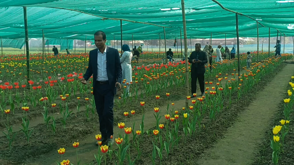 এবারও শীতপ্রধান দেশের এই ফুল চাষের উদ্যোগ নিয়েছে বেসরকারি উন্নয়ন সংস্থা ইকো সোশ্যাল ডেভেলপমেন্ট অর্গানাইজেশন (ইএসডিও)। ১০ জন নারী উদ্যোক্তার মাধ্যমে ৬০ শতক জমিতে খামারভিত্তিক টিউলিপ বাগান গড়ে তোলা হয়েছে। প্রায় ১৪ হাজার ফুলে সাজানো হয়েছে পুরো বাগান। সূর্যের আলো ও তাপমাত্রা নিয়ন্ত্রণে বসানো হয়েছে বিশেষ শেড। বাইরে রঙিন পতাকায় তৈরি করা হয়েছে নান্দনিক প্রবেশপথ।