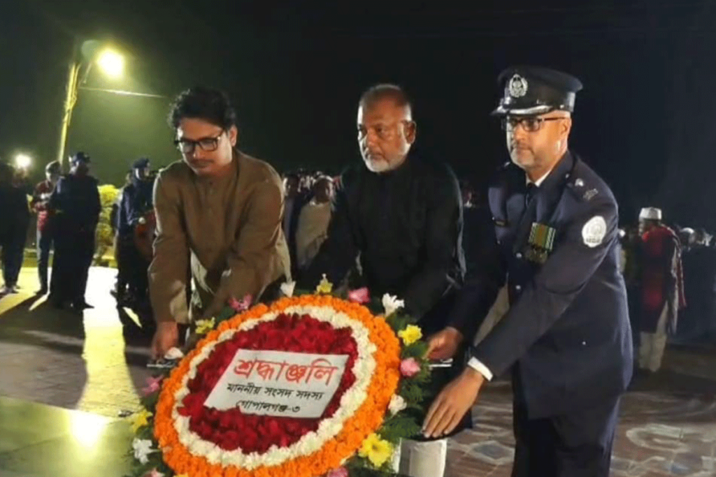 এ সময় নবনির্বাচিত এমপির পর উপজেলা প্রশাসন, মুক্তিযোদ্ধা কমান্ড কাউন্সিল, টুঙ্গিপাড়া থানা, পৌরসভা, উপজেলা ও পৌর বিএনপি, পল্লী বিদ্যুৎসহ বিভিন্ন স্কুল-কলেজ ও সামাজিক সংগঠনের পক্ষ থেকে শহীদদের প্রতি শ্রদ্ধা নিবেদন করা হয়।