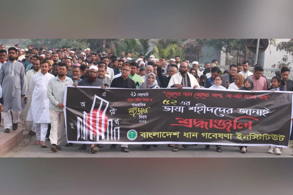 বাংলাদেশ ধান গবেষণা ইনস্টিটিউটে (ব্রি) শনিবার যথাযথ মর্যাদায় মহান শহিদ দিবস ও আন্তর্জাতিক মাতৃভাষা দিবস পালিত হয়েছে। দিবসটি উপলক্ষে ইনস্টিটিউটের গাজীপুর সদর দপ্তরে প্রশাসনিক ভবনের সামনে সকালে জাতীয় পতাকা উত্তোলন (অর্ধনমিত) এবং কালো ব্যাজ ধারণ করা হয়। পরে শহিদদের বিদেহী আত্মার মাগফিরাত কামনা করে বিশেষ মোনাজাত করা হয়।