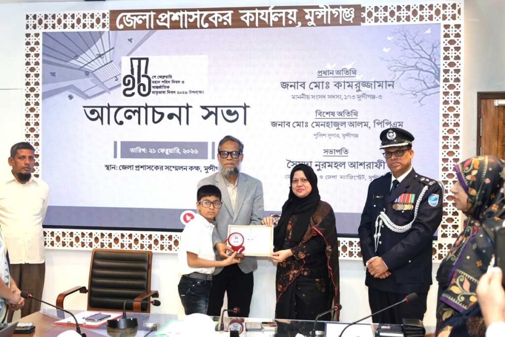 শনিবার (২১ ফেব্রুয়ারি) মুন্সীগঞ্জ জেলা প্রশাসকের কার্যালয়ের সম্মেলন কক্ষে মহান শহিদ দিবস ও আন্তর্জাতিক মাতৃভাষা দিবস-২০২৬ উপলক্ষে এ আলোচনা সভা অনুষ্ঠিত হয়। সভায় সভাপতিত্ব করেন জেলা প্রশাসক ও বিজ্ঞ জেলা ম্যাজিস্ট্রেট সৈয়দা নুরমহল আশরাফী।