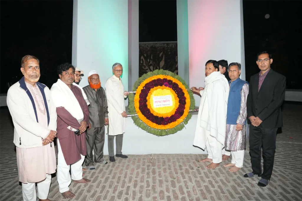 এতে উপ-উপাচার্য (প্রশাসন) অধ্যাপক মোহাম্মদ মাঈন উদ্দীন, উপ-উপাচার্য (শিক্ষা) অধ্যাপক মোহা. ফরিদ উদ্দীন খান, কোষাধ্যক্ষ অধ্যাপক মো. মতিয়ার রহমানসহ প্রশাসনের ঊর্ধ্বতন কর্মকর্তারা বিশ্ববিদ্যালয় শহীদ মিনারে পুষ্পার্ঘ্য অর্পণ ও শহীদদের রুহের মাগফিরাত কামনা করে মোনাজাত করেন।