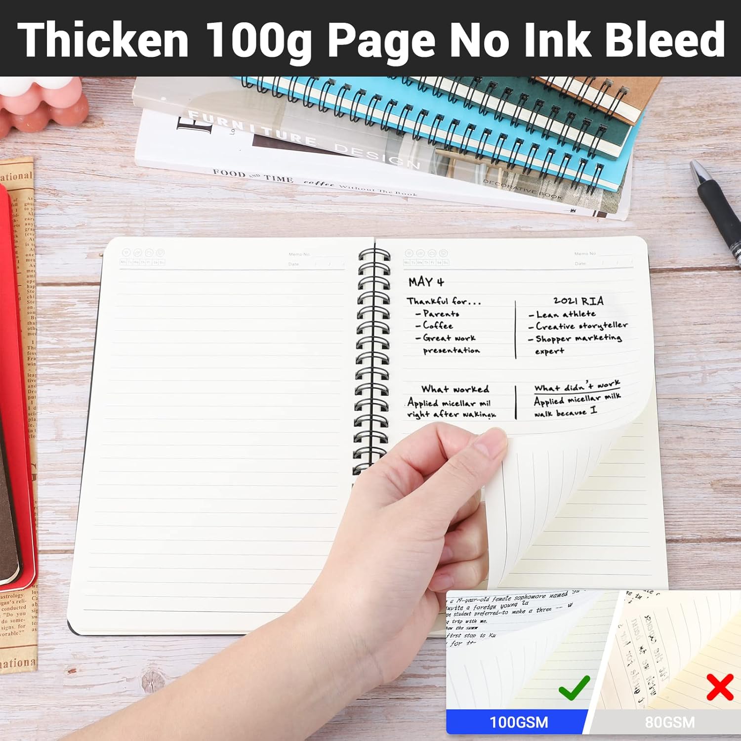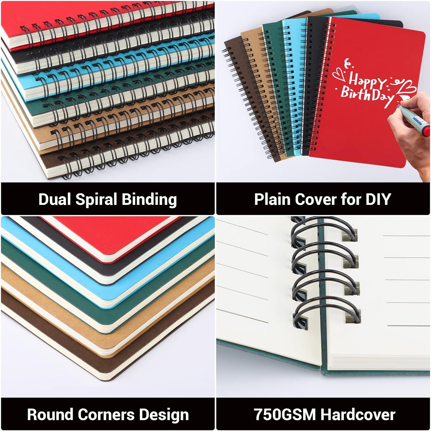 Package Included: 12pcs hardcover spiral notebook. Cover's Color: 2pcs for each color, royal blue/ purple/ orange/ red/ green/ black. Size: A5, 5.5" x 8.3" (14cm x 21cm). Pages: 160 pages/80sheets of 100gsm paper. Versatile Companion: Whether you're jotting down ideas, capturing memories on the go, or simply staying organized at work, these EUSOAR Spiral Notebooks are the perfect companions.