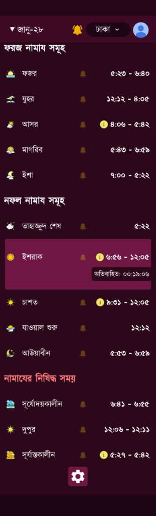 ঢাকা ও তার আশপাশের এলাকায় আজকের নামাজের সময়সূচী সূত্র: মুসলিম বাংলা এ্যাপ এই পোষ্ট টি মোট দেখেছেনঃ 7