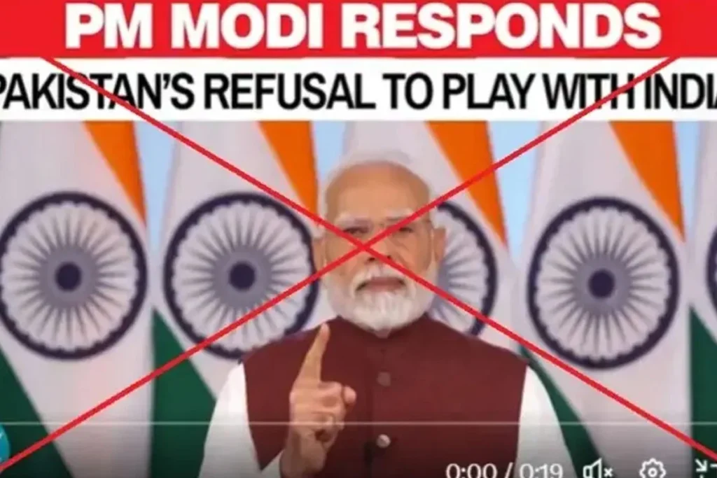 পাকিস্তান ঘোষণা করে যে তারা কলম্বোতে অনুষ্ঠিতব্য আইসিসি টি-টোয়েন্টি বিশ্বকাপে ১৫ ফেব্রুয়ারির নির্ধারিত ম্যাচটি ভারতের বিপক্ষে খেলবে না। তারই প্রেক্ষিতে অতীতে এডিট করা ও ডাব করা ভিডিও পোস্ট করার রেকর্ড থাকা একটি প্রোপাগান্ডা অ্যাকাউন্ট এক্স-এ মোদির একটি ভিডিও শেয়ার করে যার ক্যাপশন ছিল: “ব্রেকিং নিউজ: আসন্ন টি-টোয়েন্টি বিশ্বকাপের প্রেক্ষাপটে প্রধানমন্ত্রী মোদি একটি উদ্বেগজনক বিবৃতি প্রকাশ করেছেন। ‘পাকিস্তান প্রথমে আমাদের শ্রীলঙ্কায় খেলার জন্য আমন্ত্রণ জানিয়েছিল এবং যখন আমাদের দল গ্রুপ ম্যাচের জন্য সেখানে গেল, তারা আমাদের ফেলে চলে গেল, এটি লজ্জাজনক।’” পোস্টটি ১,৩৩,৪০০ ভিউ পেয়েছে।